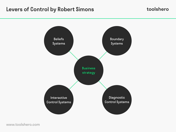 The four levers of strategy, also known as the “Levers of Control” is introduced by Harvard Business School professor Robert Simons. These are belief systems, boundary systems, diagnostic control systems, and interactive control systems. These levers are tools managers use to implement and adjust business strategies by inspiring purpose, setting limits, monitoring performance, and guiding future strategy development. These are important because they help managers balance the pressure between freedom and control, enabling them to guide their organizations toward strategic goals by ensuring commitment, defining acceptable behavior, monitoring performance, and stimulating future strategy.